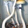 Albino A+ is a leucistic variation of the A+ strain of Psilocybe cubensis. Although often referred to as “albino,” it is not a true albino mushroom. The mutation was reportedly developed by enthusiasts experimenting with A+ genetics, resulting in mushrooms with very light coloration and reduced pigmentation.